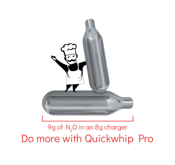 Our QuickWhip cream chargers contain the highest quality nitrous oxide and a shinier blue-tint zinc coating finish, making them the ideal accessory for any home or professional kitchen.