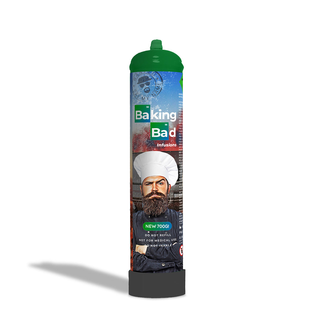 Unleash your inner mixologist with the “Baking Bad 700G Cream Canister" this compact yet powerful cylinder takes your drink and cocktail infusions to the next level. It’s a Cream Dispensers and infusion tool in one, ideal for home and professional use. With a 700-gram size, it’s perfect for concocting those signature drinks with a hint of intrigue. Elevate your mixology with the “Baking Bad” touch.