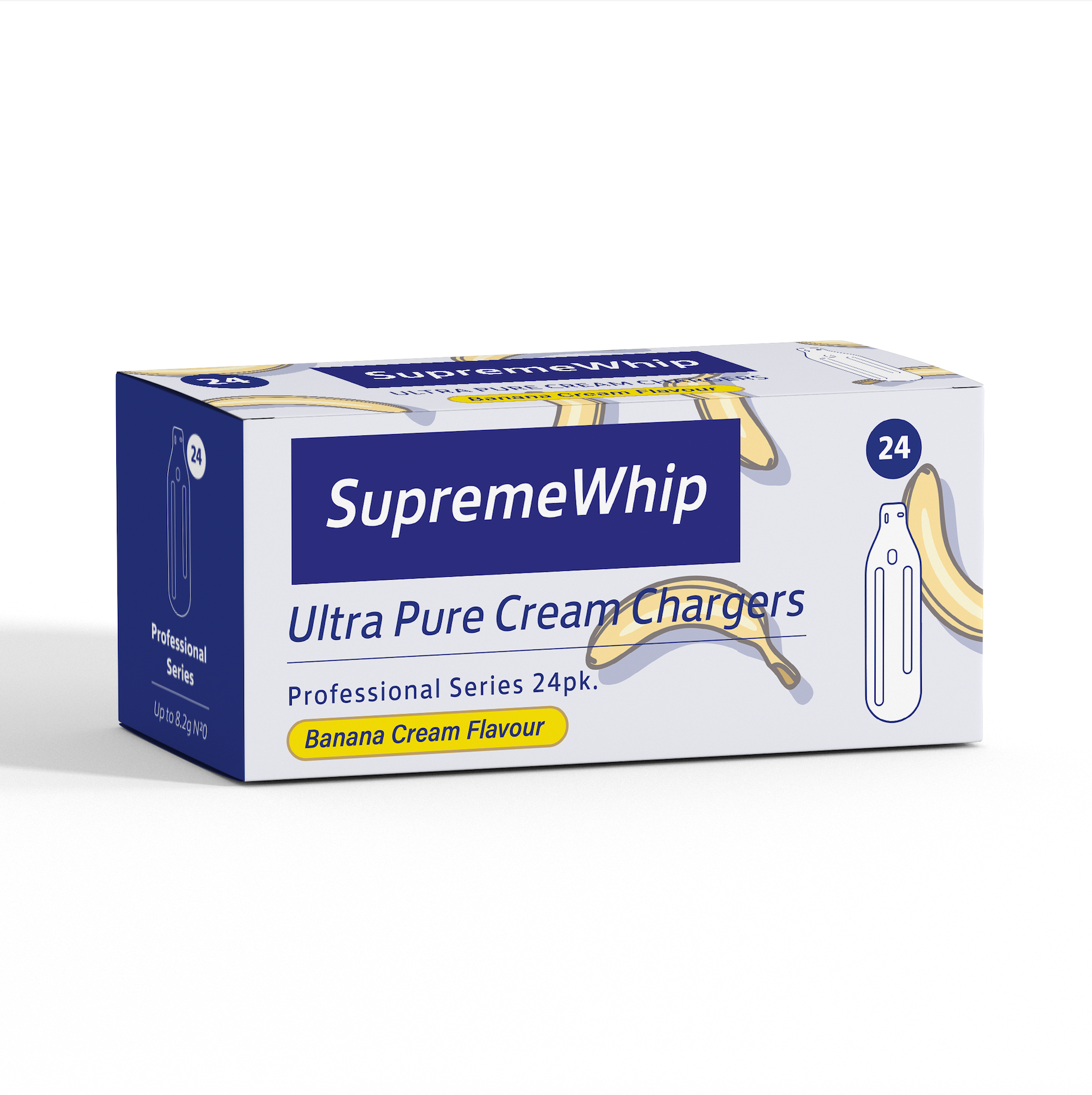 SupremeWhip Banana 8.2 Professional Series Cream Chargers Save money and time with our new product that contains more nitrous oxide! SupremeWhip Professional Chargers offer higher qualities of N2O propellant to ensure the best results, every time.