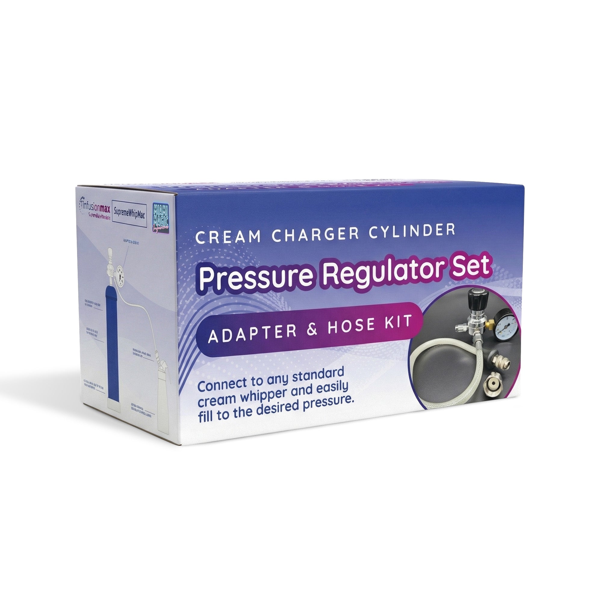 Connect to any standard cream whipper and easily fill to the desired pressure.